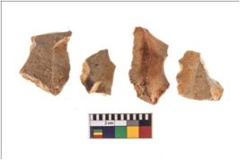 | Description / विवरण | Four worked flakes with sharp edges, some of them are tapering at one end. |