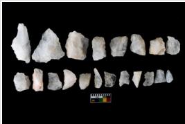 | Description / विवरण | There are n-20 of intact flake cores made up of Quartz. Some of them have bulge of percussion and some are flat flakes. |