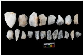 | Description / विवरण | There are n-20 of intact flake cores made up of Quartz. Some of them have bulge of percussion and some are flat flakes. |