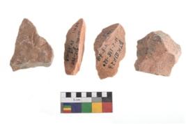| Description / विवरण | A specimen of flake tool with prominent flaking marks. It made up of a short flakes with sides trimmed. It is rectangular in shaped |
