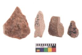 | Description / विवरण | A rectangular flake with wavy thick distal end and broken functional top. It reined pebbly cortex on one side and irregular thin edge on the other. |