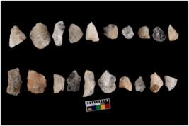 | Description / विवरण | Specimen of flake tool with prominent flaking marks. It made up of a short flakes with sides trimmed. |