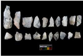 | Description / विवरण | There are n-20 of intact flake cores made up of Quartz. Some of them have bulge of percussion and some are flat flakes. |