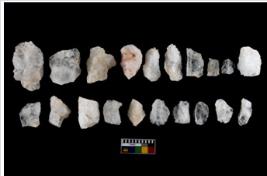 | Description / विवरण | There are n-20 of intact flake cores made up of Quartz. Some of them have bulge of percussion and some are flat flakes. |