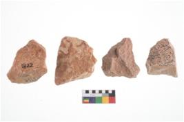 | Description / विवरण | A specimen of flake tool with prominent flaking marks. It made up of a short flakes with sides trimmed. It is rectangular in shaped |
