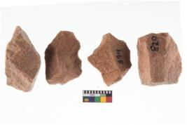 | Description / विवरण | A rectangular flake with wavy thick distal end and broken functional top. It reined pebbly cortex on one side and irregular thin edge on the other. |