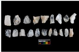 | Description / विवरण | There are n-20 of intact flake cores made up of Quartz. Some of them have bulge of percussion and some are flat flakes. |