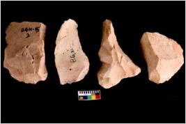 | Description / विवरण | Four worked utilised flakes. They are uneven with sharp edges. Most of them are tapering at one end. |