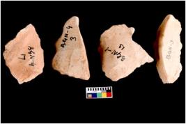 | Description / विवरण | Four worked utilised flakes. They are uneven with sharp edges. Most of them are tapering at one end. |