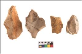 | Description / विवरण | Four worked flakes, some of them are irregular in shape whereas some are tapering at one end. |