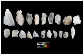 | Description / विवरण | There are n-20 of intact flake cores made up of Quartz. Some of them have bulge of percussion and some are flat flakes. |