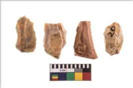 | Description / विवरण | Four worked flakes, some of them are irregular in shape whereas some are tapering at one end. |