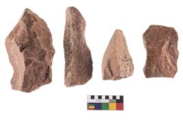 | Description / विवरण | A specimen of flake tool with prominent flaking marks. It made up of a short flakes with sides trimmed. It is rectangular in shaped. |