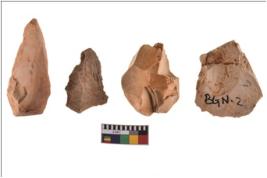 | Description / विवरण | Four worked utilised flakes. They are uneven with sharp edges. Most of them are tapering at one end. |
