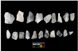 | Description / विवरण | There are n-20 of intact flake cores made up of Quartz. Some of them have bulge of percussion and some are flat flakes. |