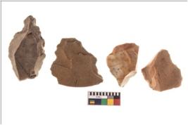| Description / विवरण | Four worked flakes, some of them are irregular in shape whereas some are tapering at one end. |
