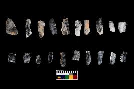 | Description / विवरण | There are n-20 of microliths, all of them are quartz. Some of them are partially broken. They show variation in colour, size and shape. Some of them are blunted back blades, points, triangles, trapezes, crescent and truncated blades. |
