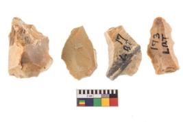 | Description / विवरण | Four flakes; most of them are tapering at one end with few having sharp edges. |