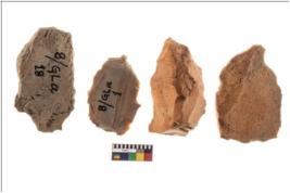 | Description / विवरण | Four worked flakes, some of them are irregular in shape whereas some are tapering at one end. |