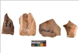 | Description / विवरण | Four worked utilised flakes. They are uneven with sharp edges. Most of them are tapering at one end. |