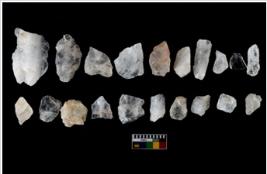 | Description / विवरण | There are n-20 of intact flake cores made up of Quartz. Some of them have bulge of percussion and some are flat flakes. |
