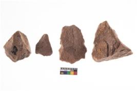 | Description / विवरण | A rectangular flake with wavy thick distal end and broken functional top. It reined pebbly cortex on one side and irregular thin edge on the other. |