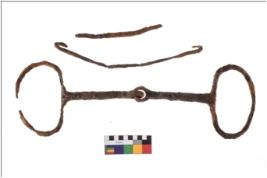 | Description / विवरण | Almost intact piece of a rusted horsebit. |