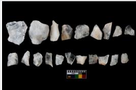 | Description / विवरण | There are n-20 of intact flake cores made up of Quartz. Some of them have bulge of percussion and some are flat flakes. |