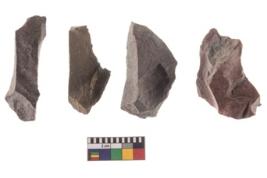 | Description / विवरण | Specimen of a fluted cores having several broad fluted marks indicating the detached blades from it. |