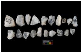 | Description / विवरण | There are n-20 of intact flake cores made up of Quartz. Some of them have bulge of percussion and some are flat flakes. |