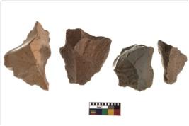 | Description / विवरण | Four worked flakes, some of them are irregular in shape whereas some are tapering at one end. |