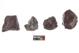 | Description / विवरण | Specimen of a fluted cores having several broad fluted marks indicating the detached blades from it. |