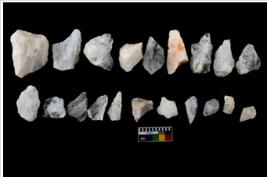 | Description / विवरण | There are n-20 of intact flake cores made up of Quartz. Some of them have bulge of percussion and some are flat flakes. |
