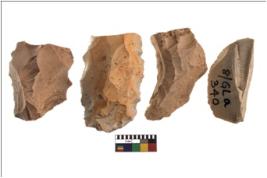 | Description / विवरण | Four worked flakes, some of them are irregular in shape whereas some are tapering at one end. |