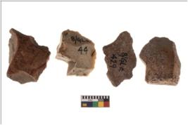 | Description / विवरण | Four worked flakes, some of them are irregular in shape whereas some are tapering at one end. |