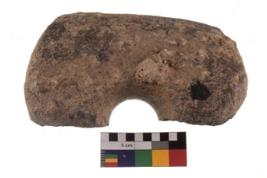 | Description / विवरण | A specimen of an oval shaped ringstone with battered periphery along with the circumference. |