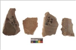 | Description / विवरण | Four worked flakes, some of them are irregular in shape whereas some are tapering at one end. |