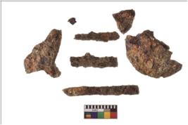 | Description / विवरण | Rusted fragment of a lamp with pieces of fragmented handle. |