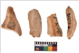 | Description / विवरण | Four worked utilised flakes. They are uneven with sharp edges. Most of them are tapering at one end. |