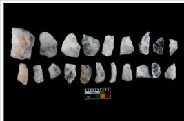 | Description / विवरण | There are n-20 of intact flake cores made up of Quartz. Some of them have bulge of percussion and some are flat flakes. |