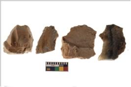 | Description / विवरण | Four worked flakes, some of them are irregular in shape whereas some are tapering at one end. |