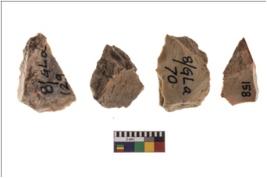| Description / विवरण | Four worked flakes, some of them are irregular in shape whereas some are tapering at one end. |