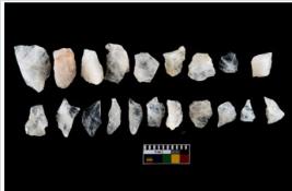 | Description / विवरण | There are n-20 of intact flake cores made up of Quartz. Some of them have bulge of percussion and some are flat flakes. |