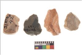 | Description / विवरण | Four worked flakes, some are uneven whereas some are tapering at one end. |