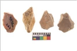 | Description / विवरण | Four worked flakes, some are uneven whereas some are tapering at one end. |