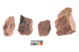 | Description / विवरण | A rectangular flake with wavy thick distal end and broken functional top. It reined pebbly cortex on one side and irregular thin edge on the other. |