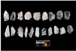 | Description / विवरण | There are n-20 of intact flake cores made up of Quartz. Some of them have bulge of percussion and some are flat flakes. |