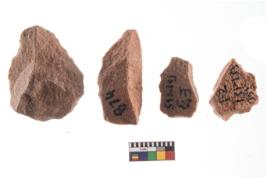 | Description / विवरण | A rectangular flake with wavy thick distal end and broken functional top. It reined pebbly cortex on one side and irregular thin edge on the other. |