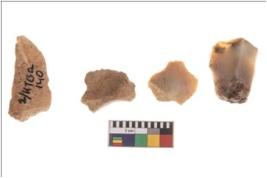 | Description / विवरण | Four worked flakes, some are uneven whereas some are tapering at one end. |