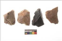 | Description / विवरण | Four worked flakes, some are uneven whereas some are tapering at one end. |